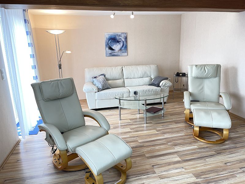 Mit 90 qm bietet es 2 Schlafräume mit Doppelbetten (elektr. verstellbare Lattenroste), 2 Duschbäder, 1 voll ausgestattete Küche mit Essbereich, 1 Wohnzimmer mit Zugang zum Balkon. Selbstverständlich sind die Betten bei Ihrer Anreise bereits bezogen und Handtücher liegen bereit.